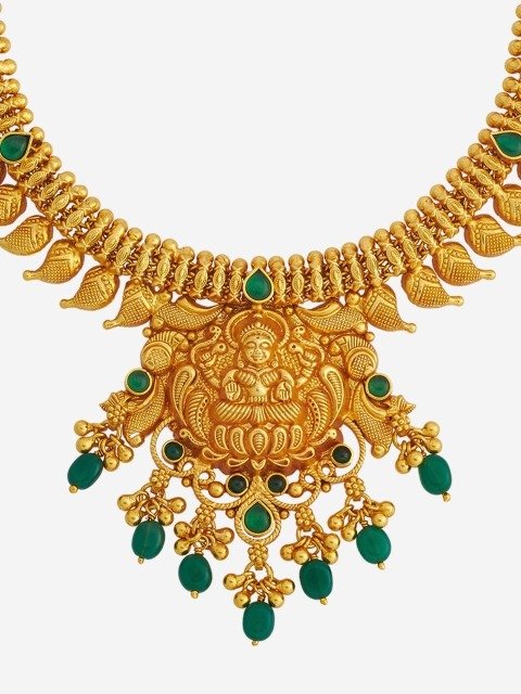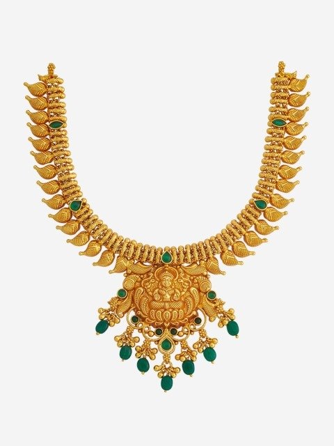 Kushal’s Fashion Jewellery 92.5 Pure Silver Gold-Plated Studded & Beaded Temple Necklace